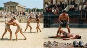 - Klimakismos: A specialized technique where a fighter climbed onto the opponent’s back to apply a rear naked choke.